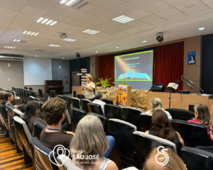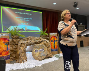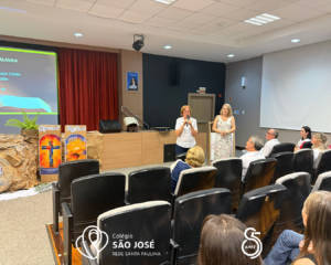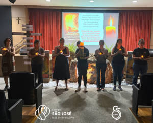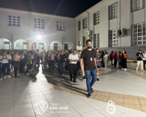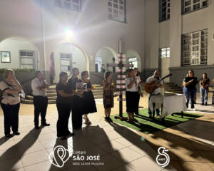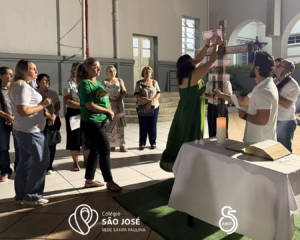 Os colaboradores do colégio se reuniram para uma celebração pascal, com momentos vivenciais: na cruz foram colocados sinais de dor e de sofrimento presentes hoje na sociedade; cada segmento pode expressar seus sinais de vida e ressurreição através de uma prece de louvor; uma caminhada com a cruz marcou nossa decisão de caminhar com Cristo nesta Semana Santa, sendo solidários com todos os que sofrem.