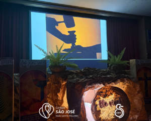 No Palco Nobre ouvimos o Evangelho da Ressurreição e fomos motivados a permanecer firmes na promoção da vida e da esperança. A entrada do Círio Pascal nos recordou que Cristo é a luz do mundo, e nós como ressuscitados somos chamados a ser presença desta luz, sobretudo em nosso ambiente educativo.